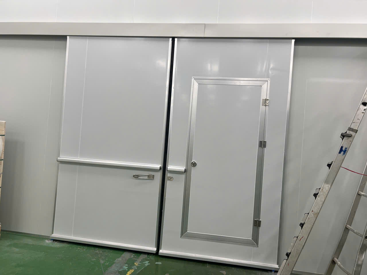 - Cửa mở (cửa đi) 1 cánh: cũng được lắp ghép từ các tấm Panel Eps. Tuy nhiên loại cửa này được thiết kế mở thủ công, thường dành cho không gian nhỏ trong nhà xưởng.