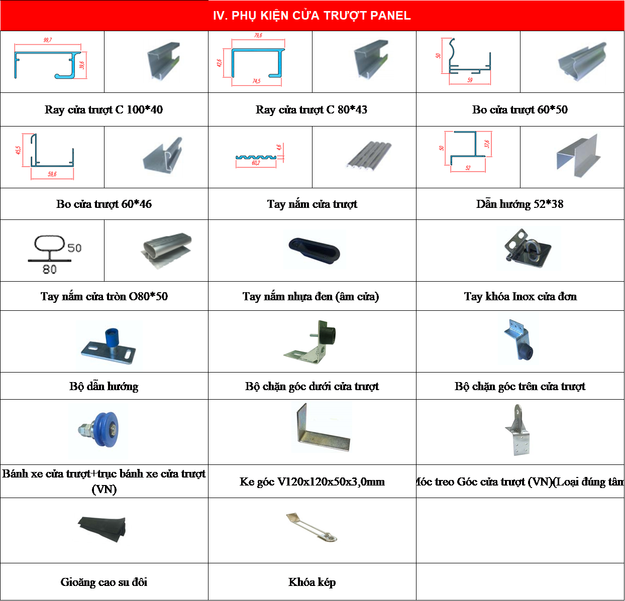 - Phụ kiện phụ trợ cho Cửa Panel mở trượt.