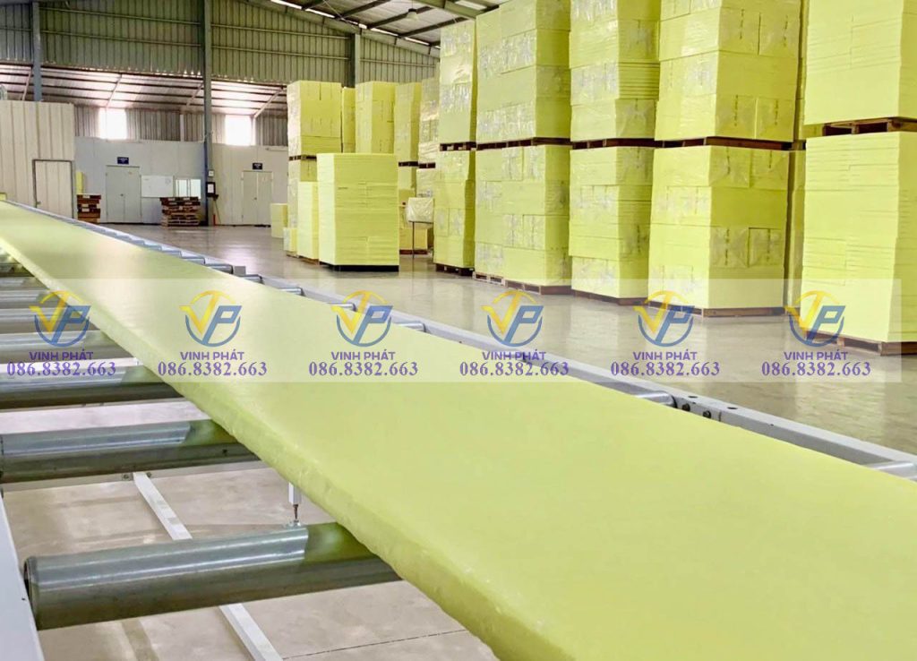 Sau khi xốp XPS cách nhiệt được đưa ra khỏi khuân đây là quá trình định dạng sản phẩm lần 2, quá trình tạo mát để ổn định sản phẩm trước khi kết thúc quy trình sản xuất.